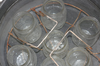 After we took them out, it was only a few minutes before we heard the "pop" of the cans, and we knew they had sealed properly! There was one jar that didn't seal, and that was because I had accidentally put two lids that were fused together on one jar - obviously, that would not seal properly. We let the jars sit while they got to room temperature, then they would go into the basement for storage.